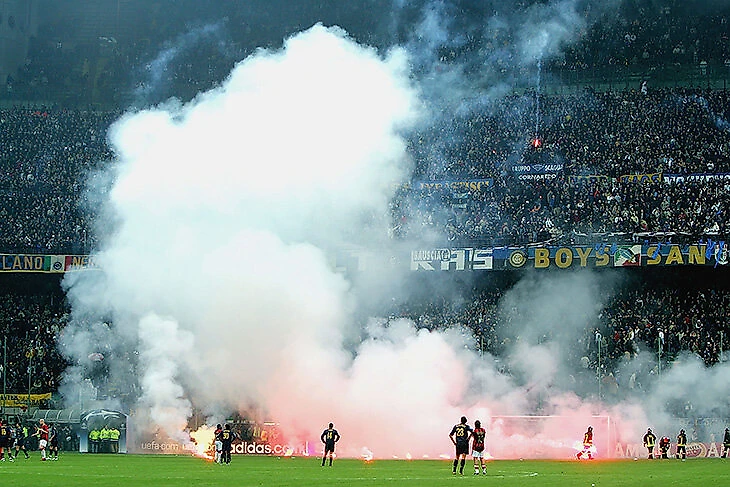 А вот судья Маркус Мерк не оценил атмосферу миланского дерби. И завершил матч досрочно.