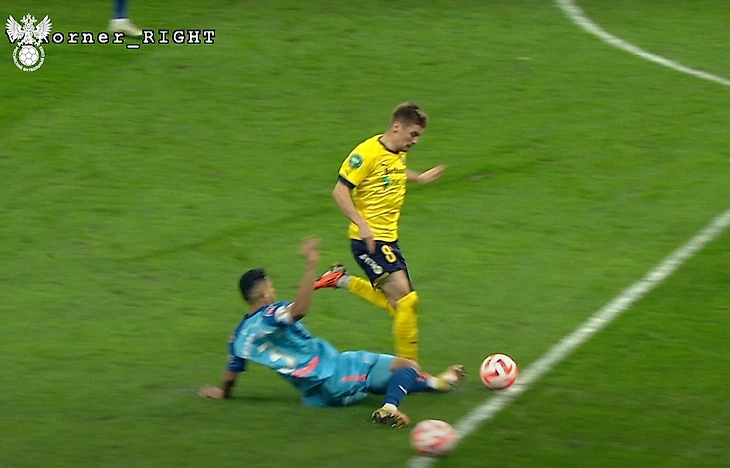 Во втором тайме очень долго смотрели эпизод с возможным пенальти в ворота «Зенита» – но в итоге сошлись на том, что фол Дугласа Сантоса на Кирилле Щетинине произошел до штрафной.