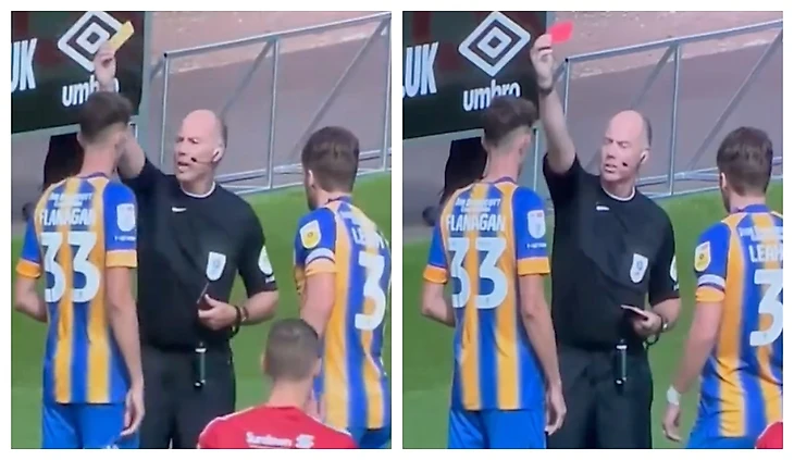 Английский арбитр регулярно показывает красные карточки игрокам «Шрусбери»: иногда сам придумывает поводы для этого🟡🟡🔴