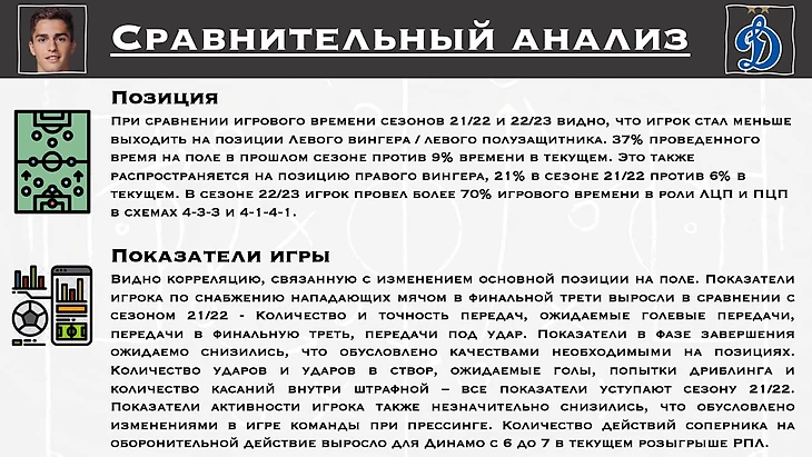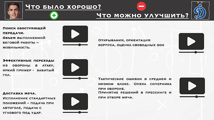 Совсем недавно мы, также, начали работать с Дмитрием Плетневым, воспитанником академии «Зенит», который сейчас играет за ФК «Арсенал» Дзержинск в Первой лиге Беларуси. На примере Дмитрия и Богдана подробно расскажем, как же строится работа по тактическому сопровождению на профессиональном и полупрофессиональном уровне.