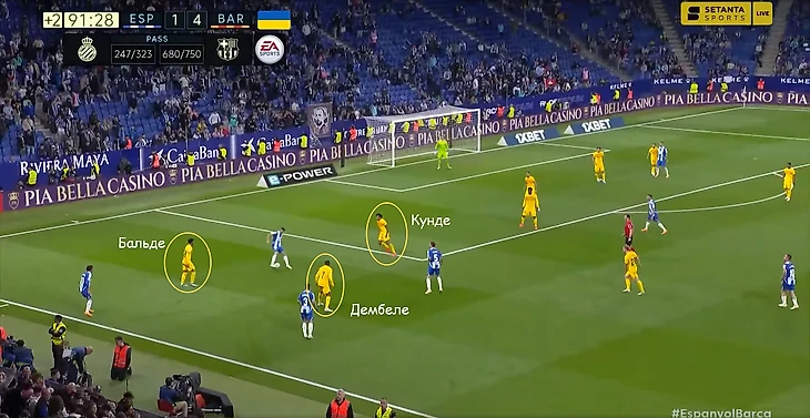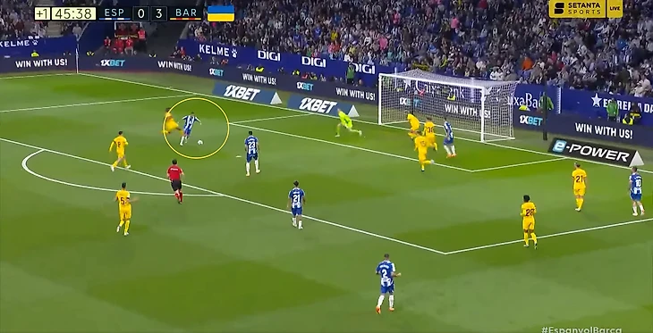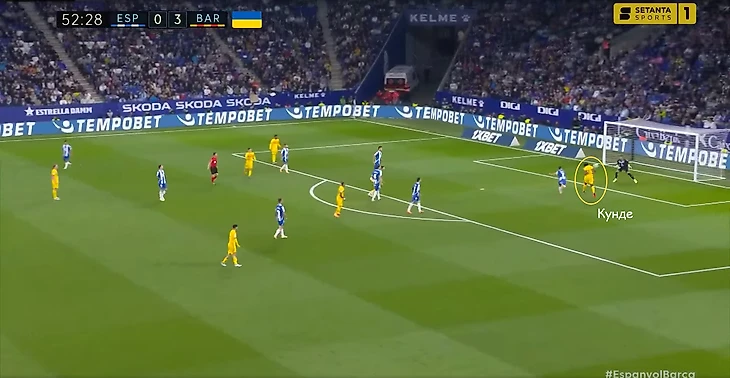Во втором пропущенном мяче было ощущение, что на поле остался один Тер Штеген, а все уже празднуют чемпионство. Угловой, после которого был забит гол, пришёл после того, как несколько футболистов «Эспаньола» без каких-либо помех разыграли комбинацию на фланге. Посмотрите на Бальде, Дембеле и Кунде – все трое решили выступит в качестве зрителей, не пытаясь помешать сопернику.