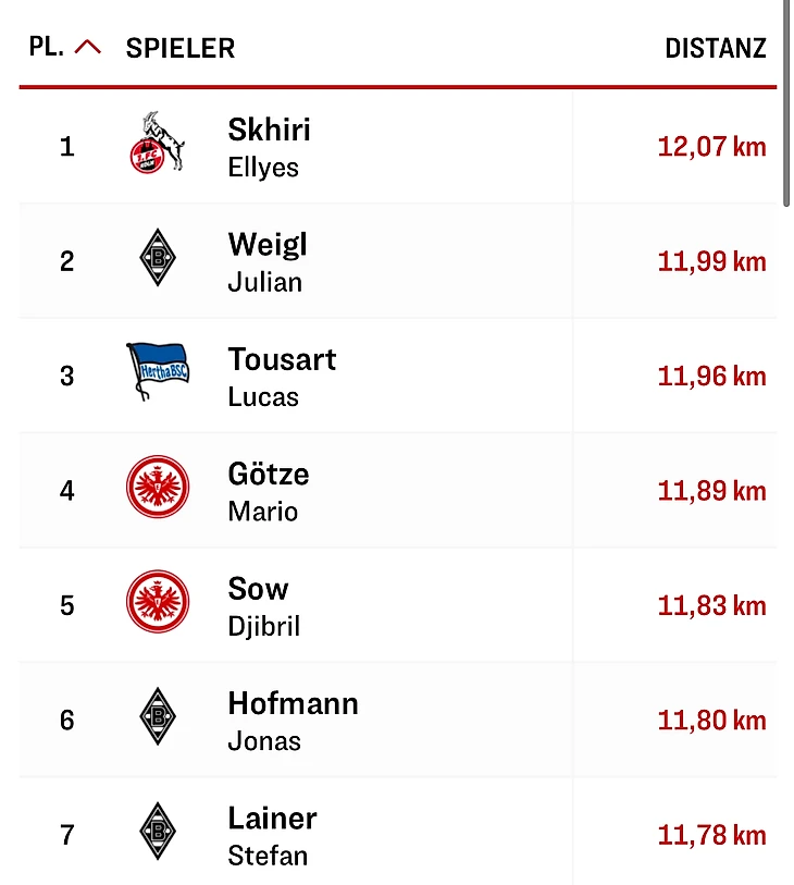 *игрок – кол-во игр – кол-во минут – в среднем км за 90 мин – всего км