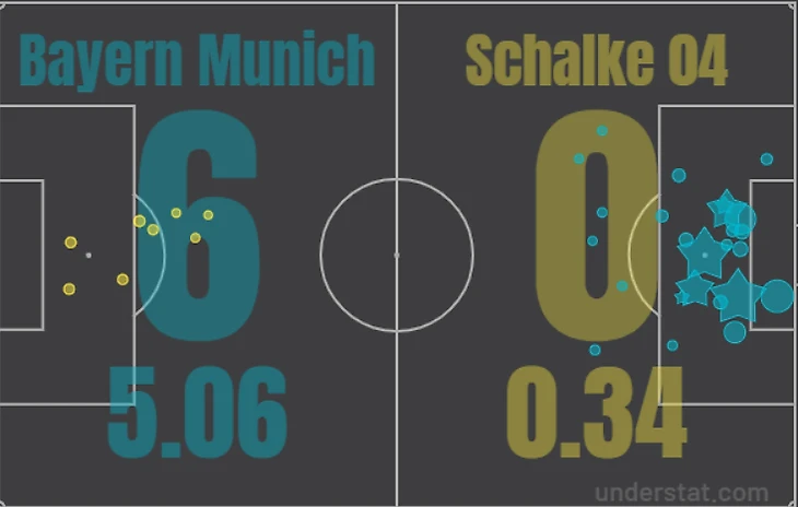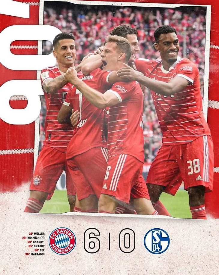 Обеим командам очень нужны очки в каждом оставшемся матче сезоне. «Бавария» продолжает свою борьбу за чемпионство, а «Шальке» – за выживание. Однако в матче борьбы не получилось совсем: «красные» закинули сопернику шесть безответных мячей. Мюнхенцы сразу взялись за дело и полетели в атаку. За первые 20 минут хозяева нанесли 9 ударов, 4 из которых пришлись в створ соперника. Спасал голкипер гостей Шволов. На 21-й минуте Томас Мюллер прервал молчание: нападающий закрутил карусель на правом фланге с Мазрауи и отдал мяч в штрафную. После отскока мяч пришел к Сане, который просто покатил на Томаса на линию штрафной: Мюллер не промазал с левой ноги. Второй гол не заставил себя долго ждать: через пять минут Мусиала пошел обыгрывать всех в штрафной соперника и получил локтем по лицу. Судьи долго не могли решить, ставить ли пенальти, но в итоге после просмотра главный арбитр матча указал на точку. Киммих уверенно развел голкипера и мяч по разным углам и удвоил преимущество. Первый тайм так и закончился, 2:0. На второй тайм «Бавария» вышла очень заряженная. Спустя всего четыре минуты Канселу усадил на газон соперника и покатил в штрафную на Гнабри. У того было куча времени и места принять мяч, подумать, сделать еще пару шагов и забить третий гол команды. На 65-й минуте после штрафного «Шальке» Гнабри подкараулил ошибку соперника в центре поля, вылетел один на 1 один и забил уже четвёртый гол «красных». Ближе к концу матча Тель уложил пятый гол команды с отличного голевого паса Джамала Мусиала (десятый ассист в сезоне). Ну и чтобы добить соперника – первый гол Нуссаира Мазрауи за «Баварию» в добавленное время. 6:0 – «Бавария» не замечает соперника уже который раз подряд (последние три матча на «Альянц Арене»– 5:0, 8:0, 6:0) и продолжает борьбу за чемпионство. Следующий матч «красных» – дома против «Лейпцига». «Шальке» борется за выживание: в следующем туре в гости в Гельзенкирхен приедет «Айнтрахт». Матч будет особенно сложным еще потому, что команда лишилась своего лучшего бомбардира из-за перебора желтых карточек. Кстати говоря: