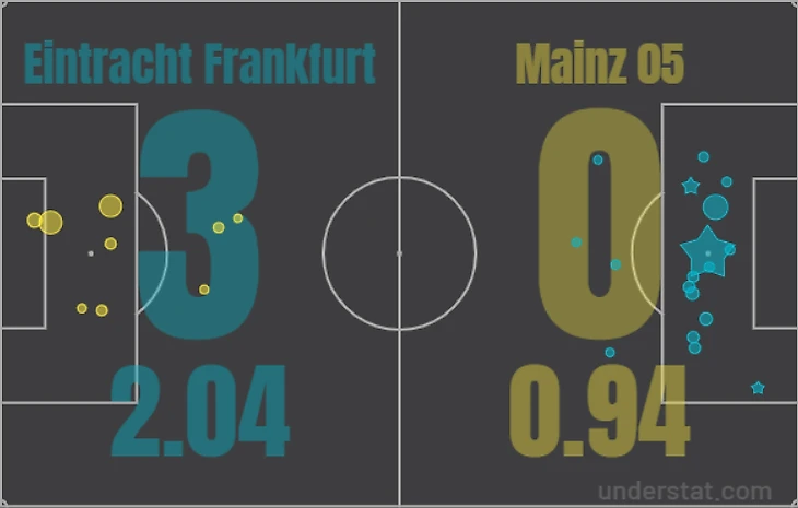 Во втором тайме общая картина не поменялась: «Майнц» мало атаковал, «Айнтрахт» шёл вперёд, и на 59 минуте Рандль Коло Муани сделал счёт разгромным, забив свой 14-й гол в сезоне. Хороший шанс сократить отставание в счёте был у Карима Онисиво на последних минутах матча, но Кевин Трапп парировал удар. Итог: «Айнтрахт» прерывает десятиматчевую безвыигрышную серию в Бундеслиге и обгоняет «Майнц» в турнирной таблице. Оливер Гласнер, смотревший матч на трибунах из-за дисквалификации в прошлом матче, очевидно остался доволен своей командой.