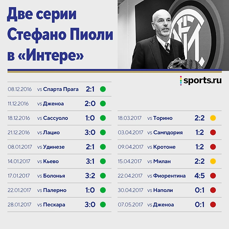 В итоге приключение Пиоли в Милане продлилось всего 182 дня: в него попали подъем с 12-го на третье место, эффектная победная серия и худший отрезок с сезона-1947/48.