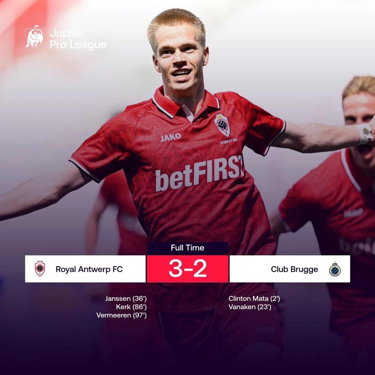 «Антверпен» превратил 0:2 против «Брюгге» в 3:2 – а решил все дебютный гол 18-летнего воспитанника на 97-й минуте! 💥