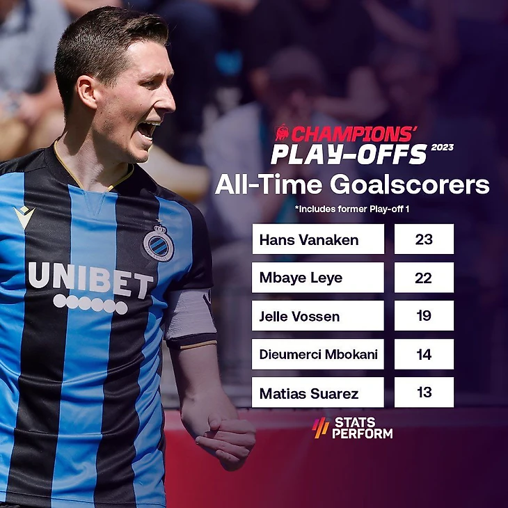В прошлом туре Ханс догнал Мбайе Лейе, а теперь обошел. У него уже 23 гола в чемпионских плей-офф. А еще полузащитник «Брюгге» забил в четвертом матче подряд.