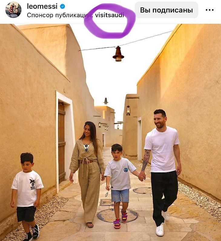 А в понедельник Лео все-таки выложил у себя на странице пост, ради которого летал в Саудовскую Аравию, послом которой является в соответствии с контрактом.
