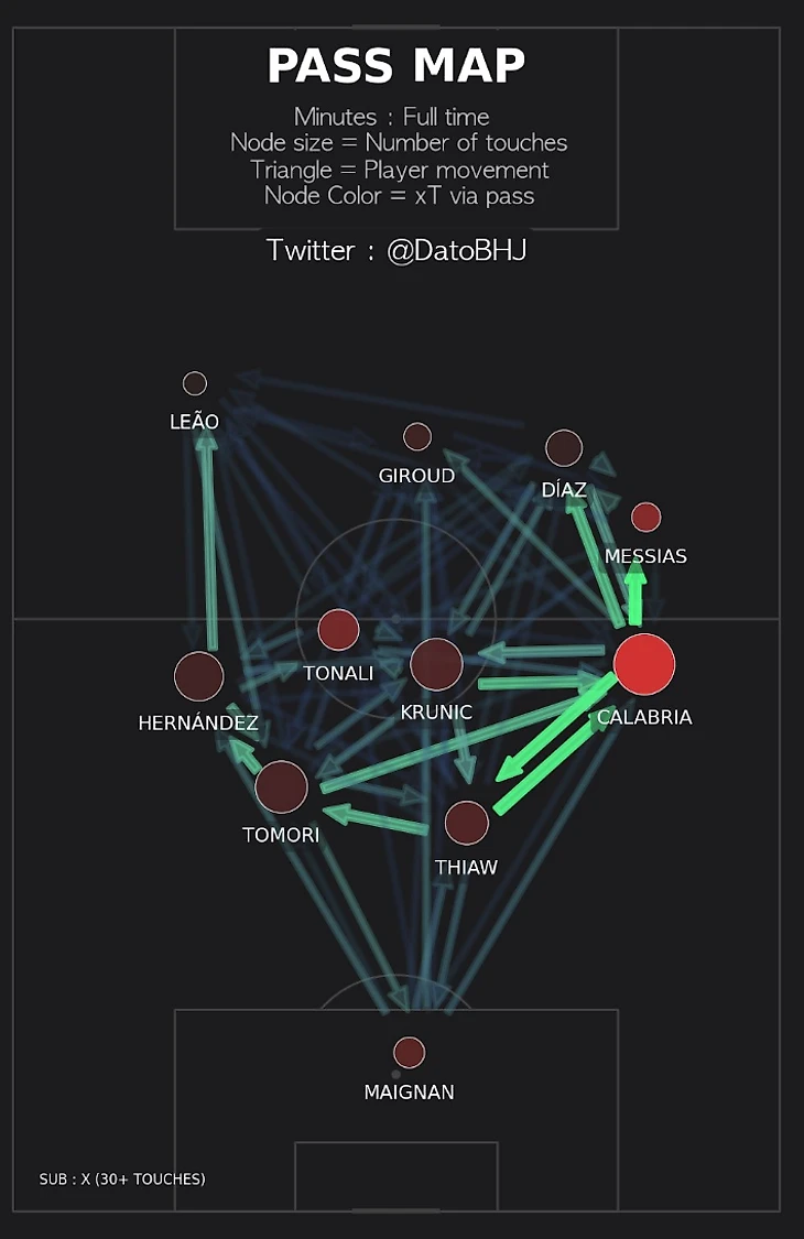 Давиде позволяли владеть мячом, искать решение, понимая, что это ведет атаку в удобном направлении. Через правый фланг шло 40% атак «Милана» (против 30% через фланг Тео и Леау).