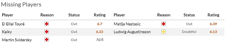 Кроме несдержанного Суареса, хозяева не смогут в воскресенье рассчитывать на перебравшего карточек Валентина(5,5), а у гостей совершенно некстати травмировался Мартин Брэйтуэйт(7,5).