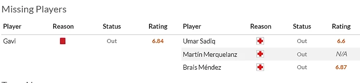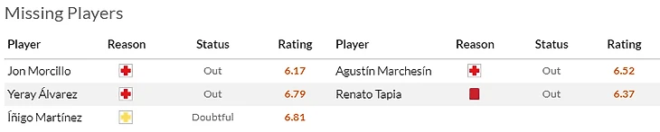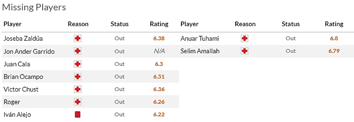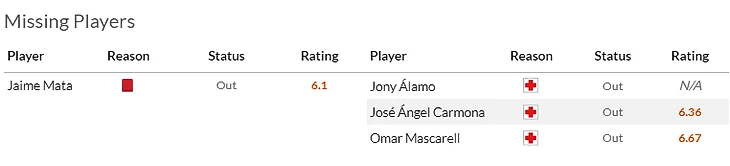 Что касается хозяев, то лучшим подарком для них будет стало возвращение в общую группу Валентина Кастельяноса(7). А вот Ориолю Ромеу(6) никакие врачи не помогут - у хавбека дисквалификация.