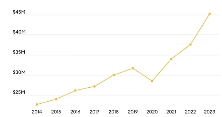 В конце прошлого года Роналду перешел в «Ан-Наср» с зарплатой около $75 млн в год. При этом за последние 12 месяцев зарплата 38-летнего португальца составила $46 млн. Роналду не первый спортсмен, который смог заработать $90 млн за пределами поля. Роджер Федерер превышал эту отметку пять раз, гольфист Тайгер Вудс — три раза, а экс-чемпион UFC Конор Макгрегор — однажды, после того как в 2021 году продал свой бренд виски Proper Twelve.