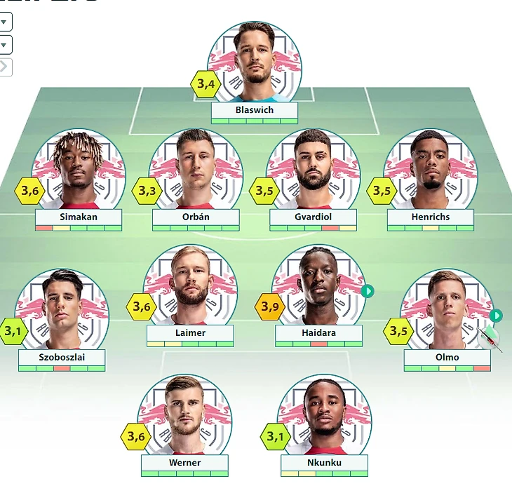 «РБ Лейпциг»: Бласвих – Симакан, Орбан, Гвардиол, Хенрикс – Собослаи, Лаймер, Хайдара, Форсберг – Нкунку, Вернер