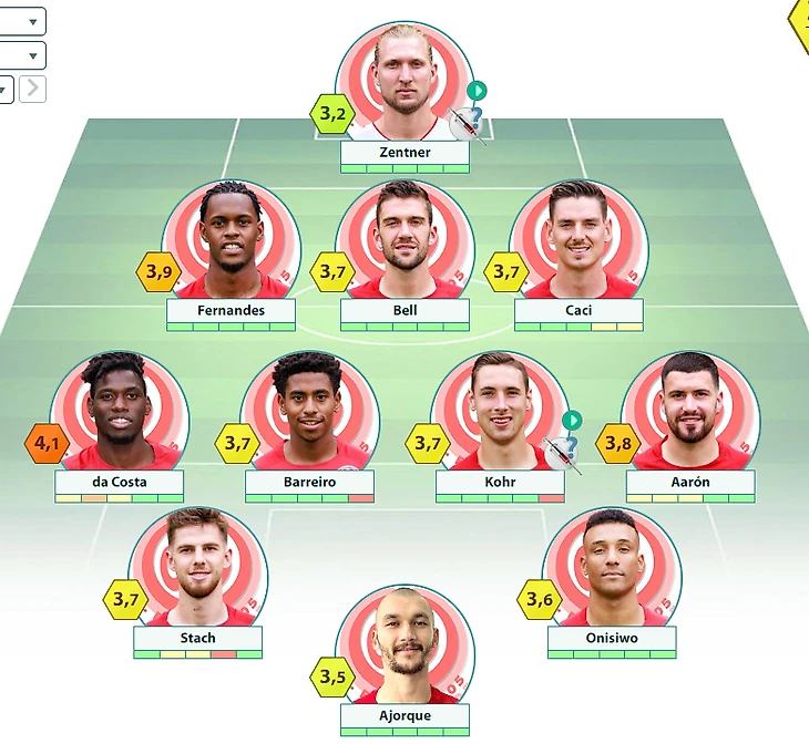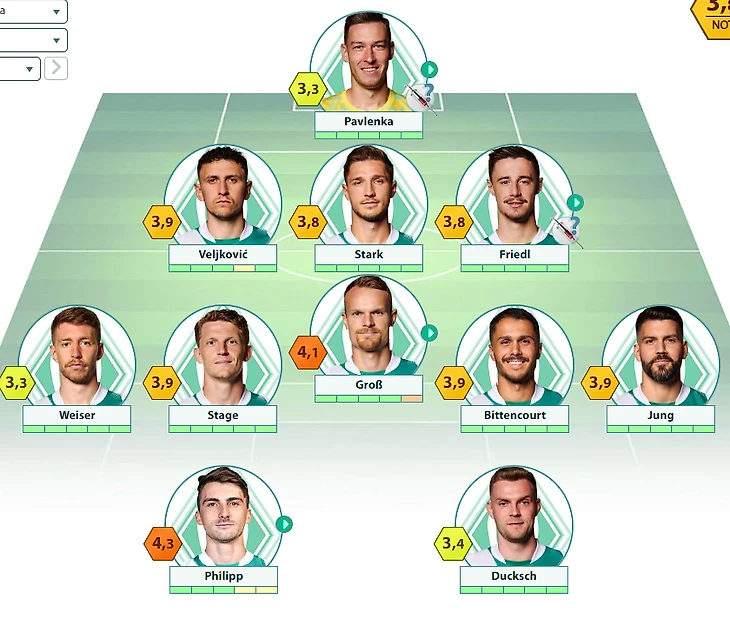 Ориентировочные составы (здесь и далее – версия Bundesliga.com – текст, версия LigaInsider.de – скрин):