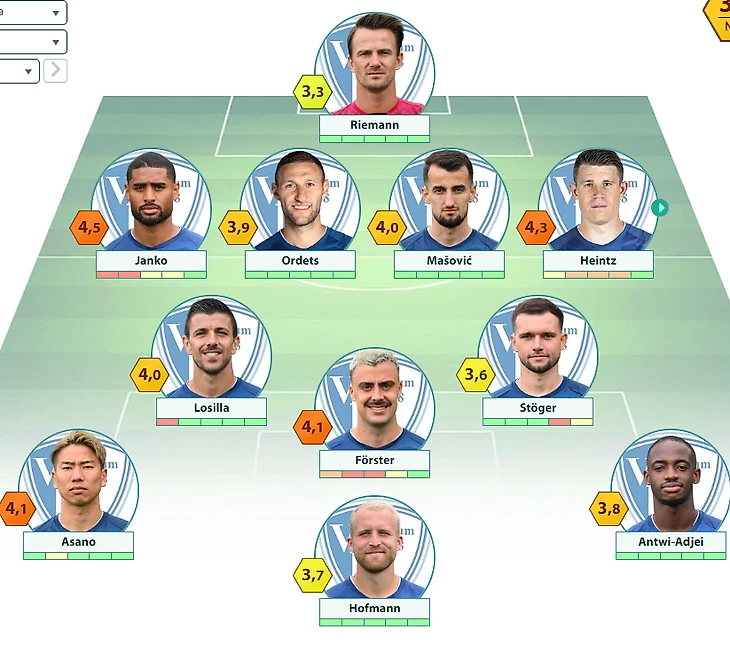 «Бохум»:Риманн – Джанко, Ордец, Машович, Соарес – Лосилла, Штегер – Асано, Ферстер, Антви-Аджей – Хофманн
