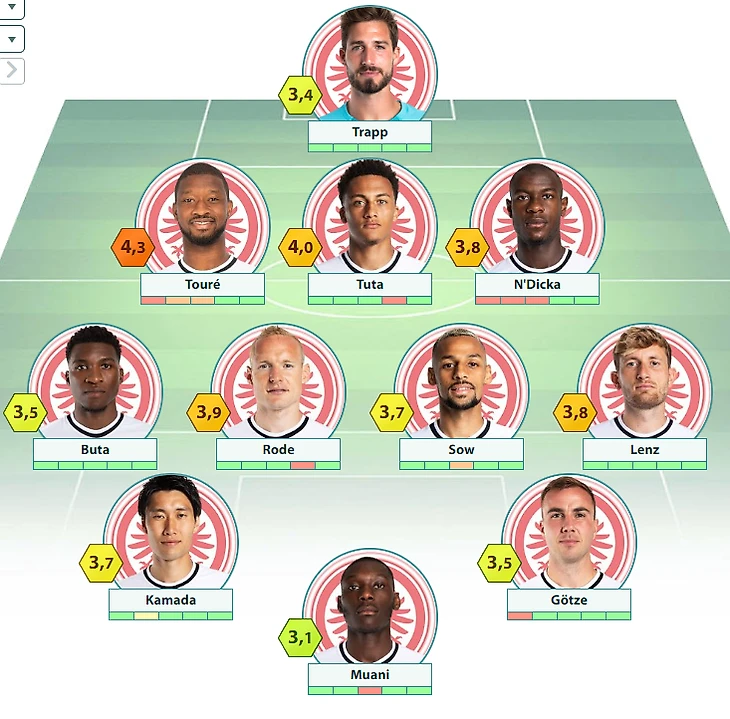 «Айнтрахт» Франкфурт:Трапп – Туре, Тута, Ндика – Бута, Роде, Соу, Ленц – Камада, Гетце – Коло-Муани