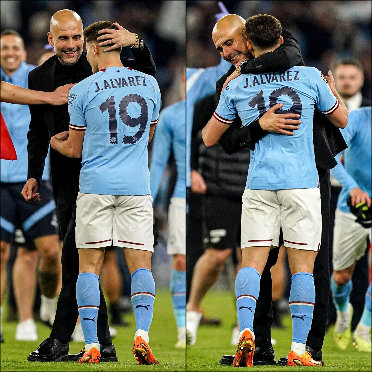 Красивая история Хулиана Альвареса: 7 лет назад смотрел матчи Пепа, сидя за школьной партой, а теперь вышел с ним в финал ЛЧ😍😍😍
