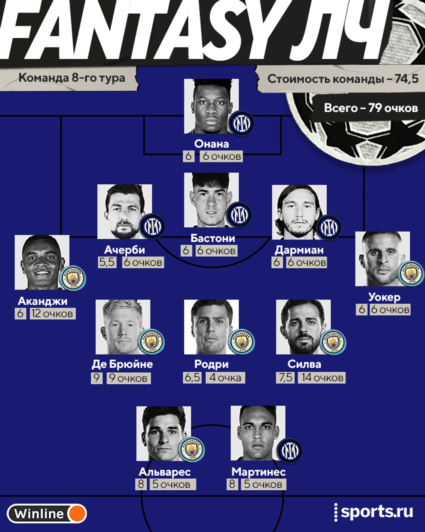 • состав – лучшее, что можно было получить в туре, если собирать команду по фэнтези-правилам (общая стоимость – 100, максимум шесть игроков из одного клуба, при равенстве очков проходит более дешевый).