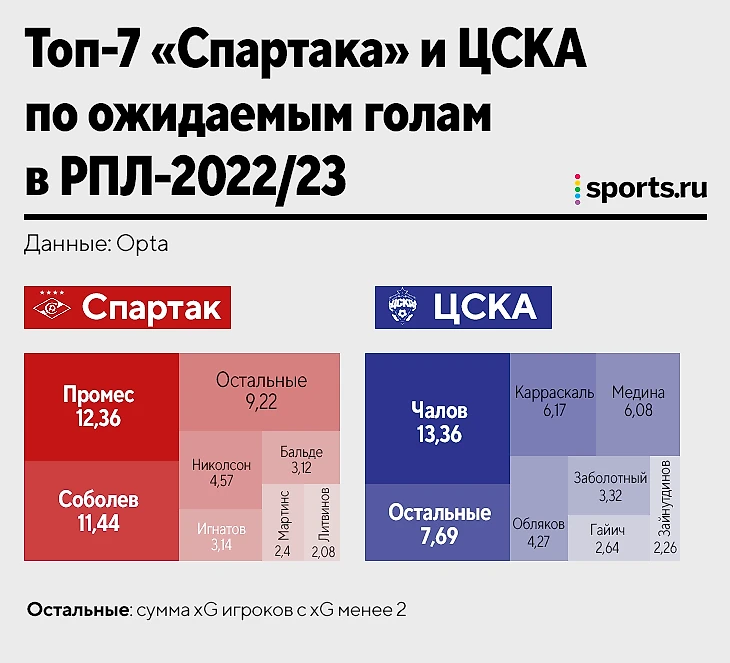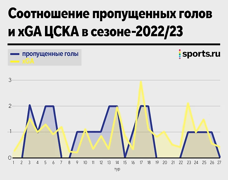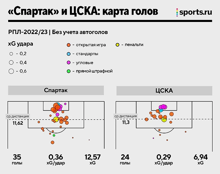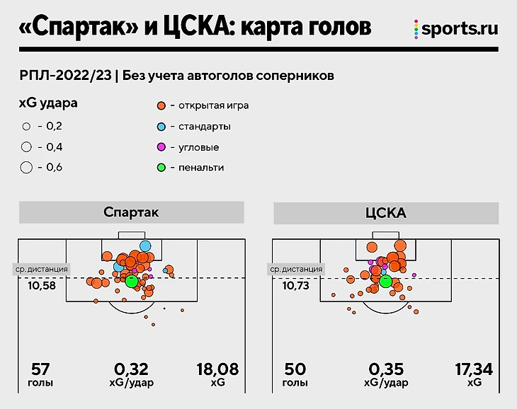 В этом сезоне «Спартак» пропустил больше ЦСКА (35:24), но соперникам Акинфеева требовались менее опасные удары (0,29 xG:0,36 xG).