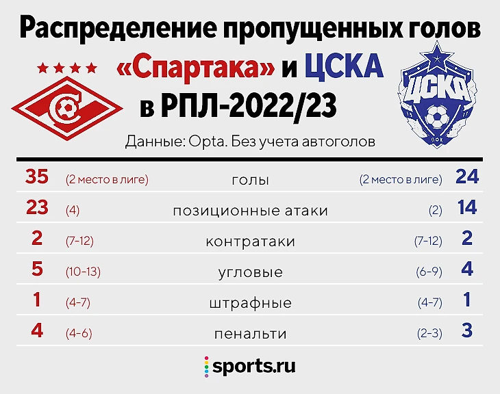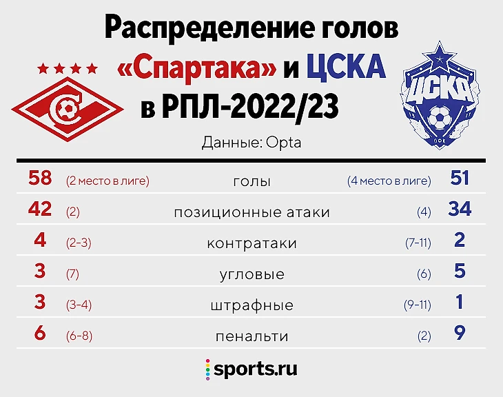 «Спартак» забивает с линии вратарской, а ЦСКА чаще реализует моменты головой