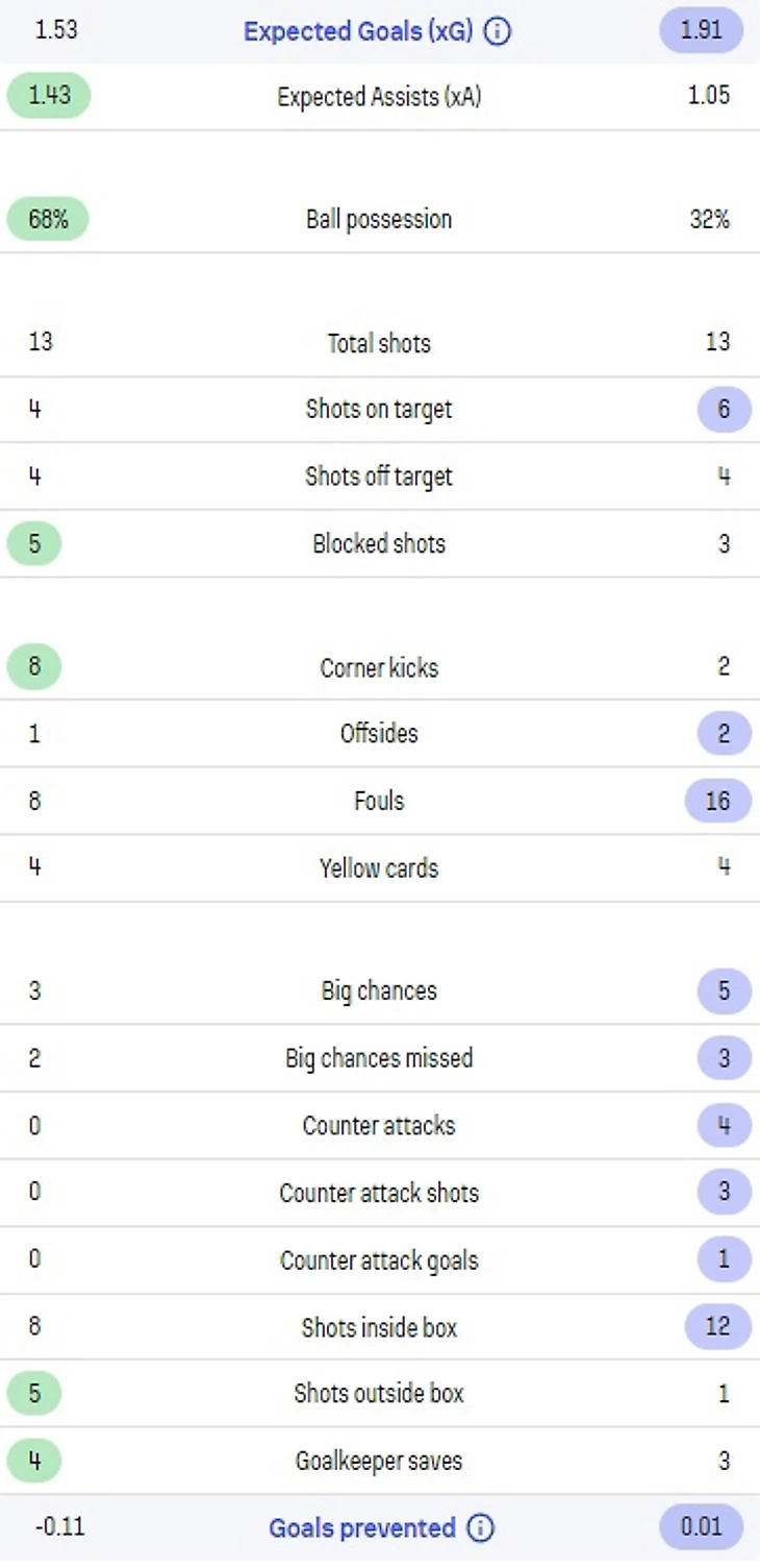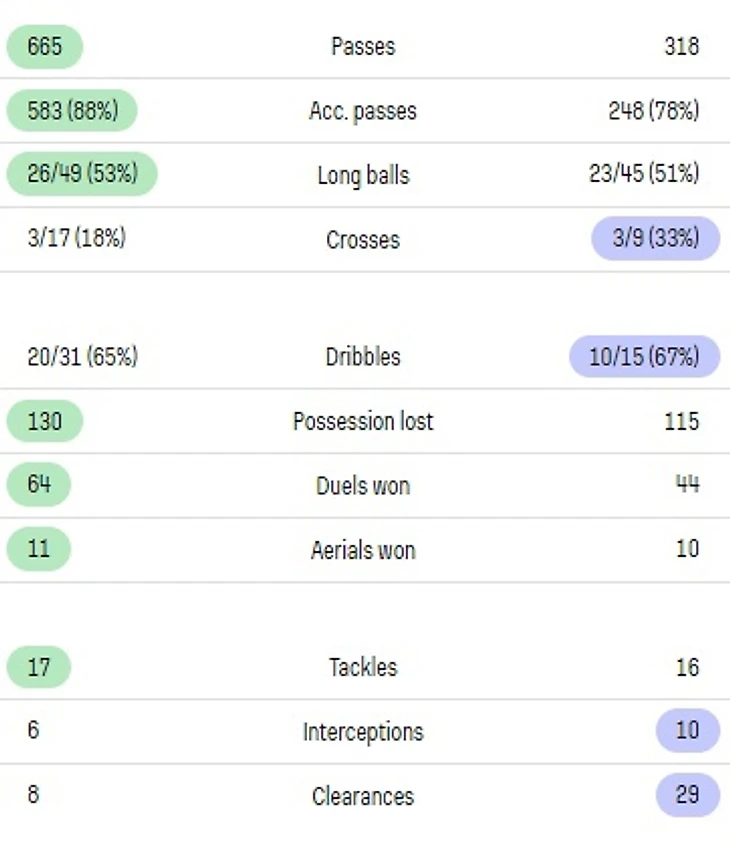 Показатели команды (каталонцы в левой колонке):