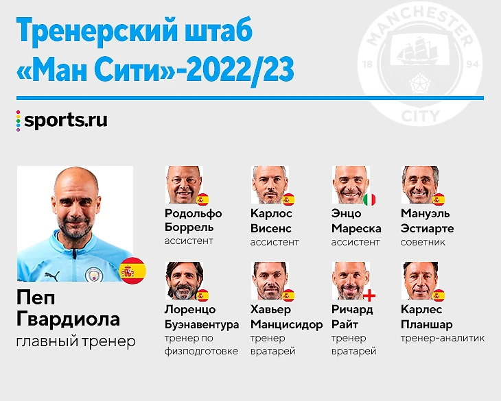 В штабе Гвардиолы есть еще два специалиста, которые вместе с ним прошли школу «Барселоны» и «Баварии»: 60-летний тренер по физподготовке Лоренцо Буэнавентура и 57-летний тренер-аналитик Карлес Планшар.