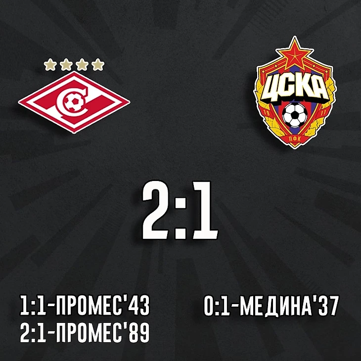 Гол Промеса на 90-й минуте принес «Спартаку» победу в дерби над ЦСКА