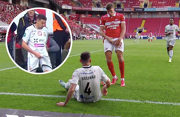 Дикая история с удалениями Александра Соболева и Виллиана Роши на 69-й минуте. Спартаковец показал провокационный жест в адрес защитника после контакта – схватился между ног.
