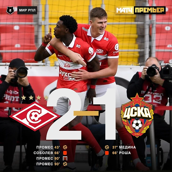 Дубль Промеса принес «Спартаку» победу в дерби с ЦСКА - 2:1!