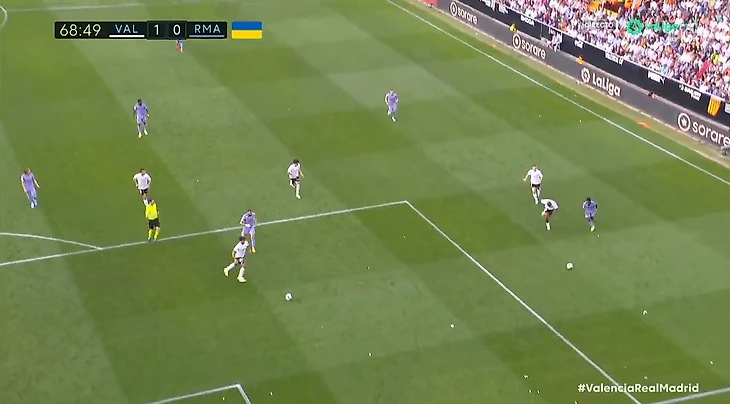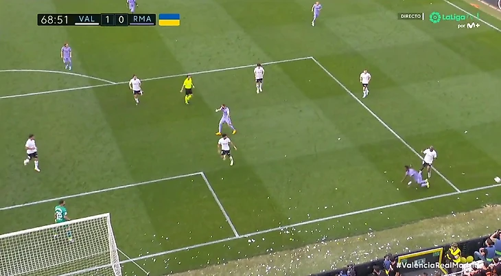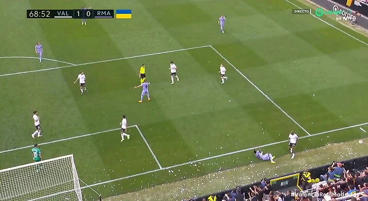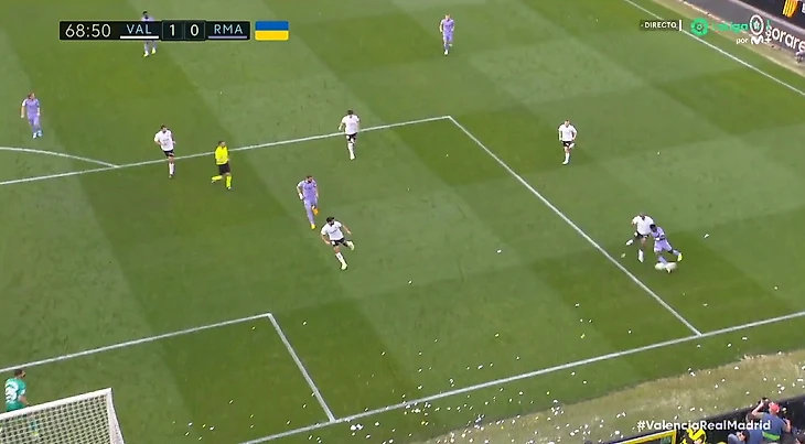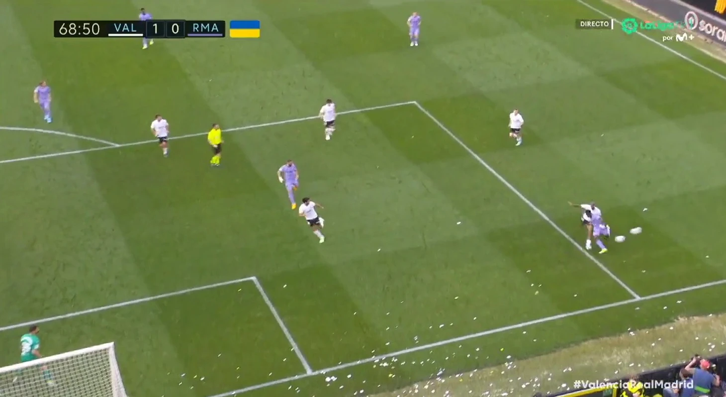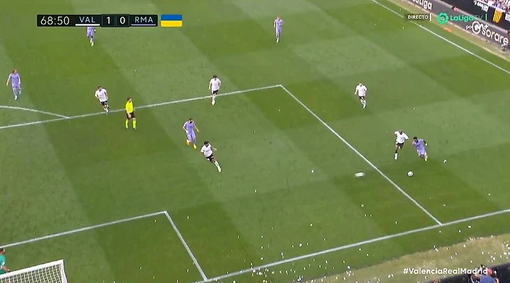 У «Реала» выдался откровенно неприятный воскресный вечер — команда Анчелотти не только проиграла в гостях у «Валенсии» со счетом 1:0, но и пережила несколько очень неприятных моментов на поле. Большинство из них было сосредоточено вокруг Винисиуса, и особенно шокирующим с точки зрения игры стал эпизод на 68-й минуте матча.