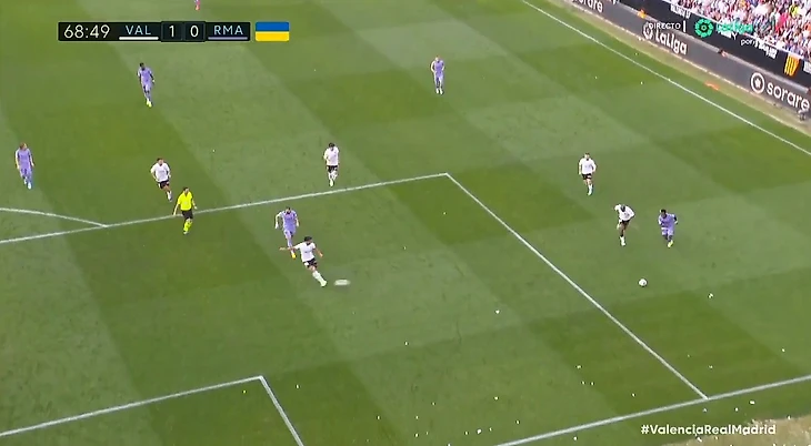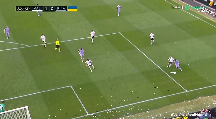 Что вообще происходило на этом матче? Игрок «Валенсии» прервал атаку Винисиуса, выбив у него из ног мяч... другим мячом 🤯👀