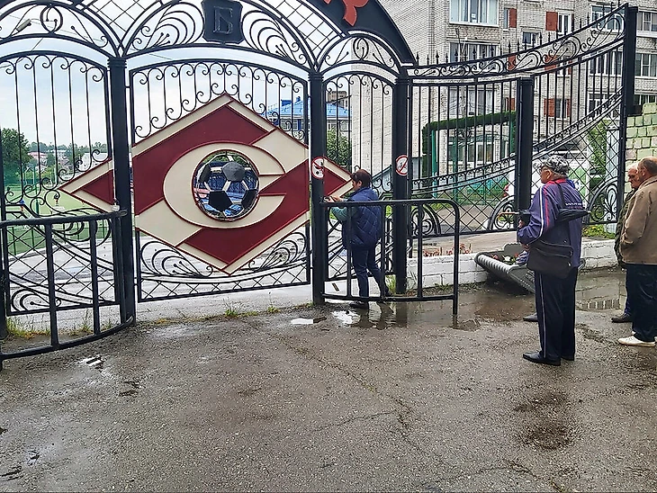 Бубнили и три болельщика, которые уже хотели было зайти на стадион, но не могли этого сделать, так как ворота были на замке. И вот уже игроки «Спартака» и «Металлурга» вышли на разминку, а болельщиков все не пускали и не пускали. Однако вскоре из административного здания вышла женщина в жилетке и несколькими поворотами ключа это исправила.