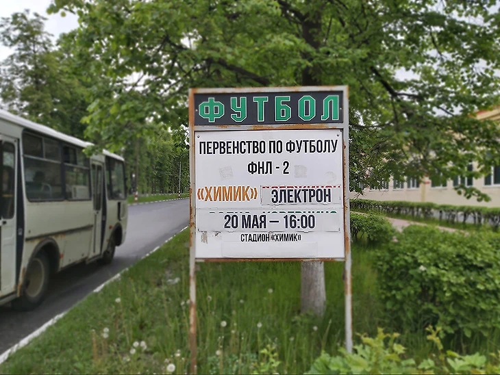 На деле же о матче «Химика» с «Электроном» говорили только установленные около стадиона «Химик» стенды. Забавный факт: поскольку обновление информации на стенде заключается исключительно в замене одного соперника дзержинцев на другого, а прочие данные давно не обновлялись, получается, что «Химик» по-прежнему выступает в турнире под названием ФНЛ-2.