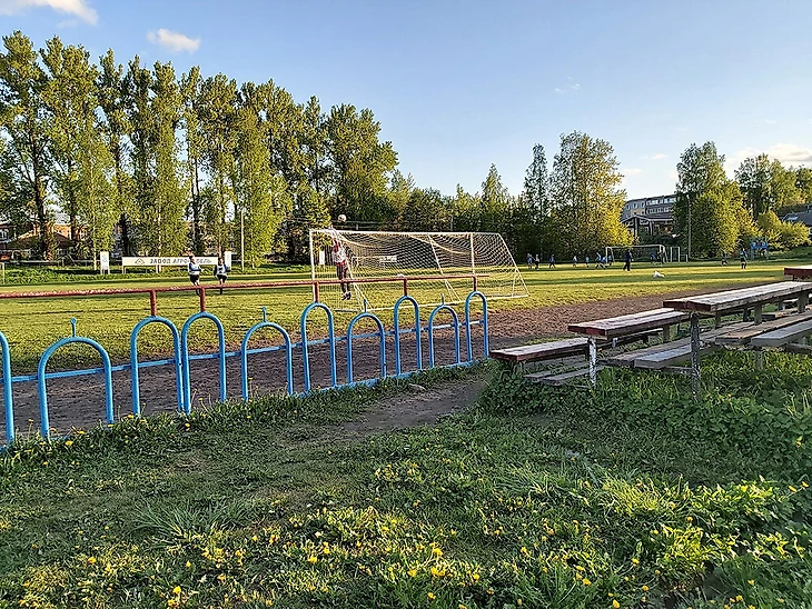 Воспользовавшись услугами блаблакара, добираемся до Окуловки – небольшого городка с населением около десяти тысяч человек. Поскольку до поезда оставалось порядка двух с половиной часов, решаем не терять времени даром и прогуляться до местного стадиона «Смена».