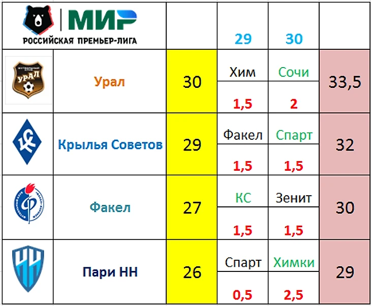 Замечательное выступление в кубке России отняло в последних матчах у команды и Виктора Гончаренко три вагона энергии, что ярко продемонстрировало 21 мая стояние на Волге во втором тайме. Но дело в том, что может быть так, что им и делать-то ничего не придется. Если "Крылья" побеждают в Воронеже, а Юран не берет очки на "Открытии Арена" (напомним, что "Спартак" всерьез включился в гонку с ЦСКА за Чемпионство по пути регионов без Питера), то "Урал" математически избегает стыков (с "Факелом" у них лучше по личкам). Для профилактики можно увезти ничью из потухших Химок. Ну в общем, еще что-нибудь набрать.
