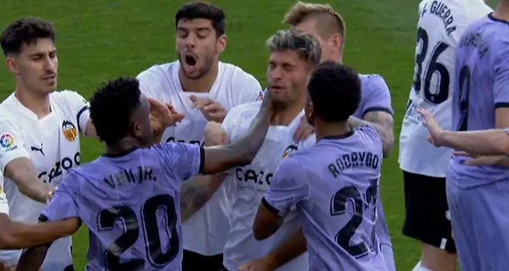 Фанаты «Валенсии» всю игру (и до нее) кричали в адрес Винисиуса расистские кричалки и однажды даже выбросили на поле второй мяч во время атаки «Реала». В конце второго тайма нервы бразильца сдали окончательно.