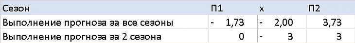 1. Исход П1 играется на 1,73 матча меньше прогнозируемого, если считать последние 9 сезонов и играется точь в точь, как прогнозирует исход за последние 2 сезона.