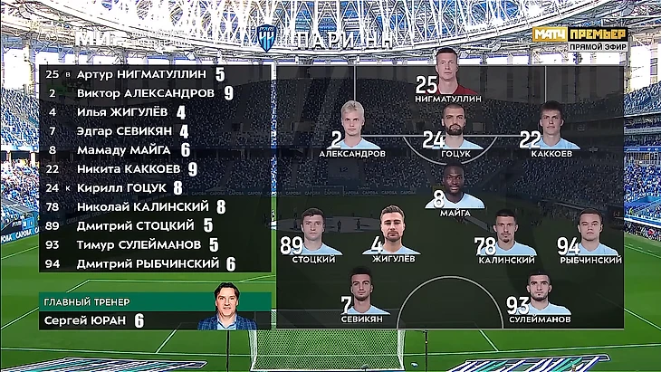 Стоцкий – 5, при стечении матча выпал из игры. Перевод на левый фланг для выравнивания диапазона атак не привел к какому-то изменению в направлении атак (все через правый фланг). Но этот перевод от Юрана привел ко второму голу. Ведь будь там Стоцкий мы бы увидели обычный навес.