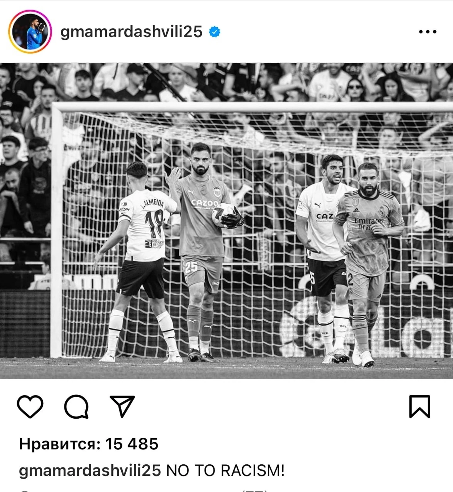 После матча в соцсетях голкипера «Валенсии» появился пост с лаконичной подписью: «Нет расизму».