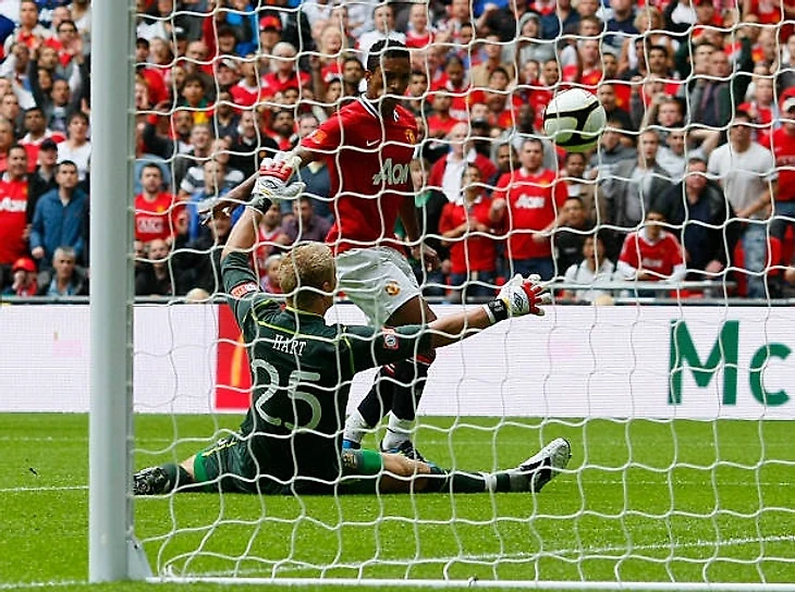 «Юнайтед» практически весь второй тайм находился на половине поля «Сити». Но счет не менялся. Казалось, что серии одиннадцатиметровых не избежать. Димитар Бербатов, заменивший на 89-й минуте Дэнни Уэлбека, явно вышел под послематчевые удары. Зрители на «Уэмбли» также предвкушали дуэль Харта и де Хеа. И все же Манчестер остался красным.