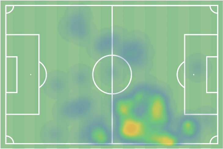 Только что вы увидели усредненную тепловую карту Джордана Хендерсона в матчах с «Арсеналом» и «Лидсом». Если Трент передвигается в полузащиту на постоянной основе, он, вероятно, занимает именно эту роль. Хендо в матче с «Лидсом» набрал всего 74 касания и 66 попыток паса: это почти в два раза меньшая вовлеченность в игру, чем у ТАА в этом же матче. Направо же в этом случае был бы нужен новый защитник под основу.