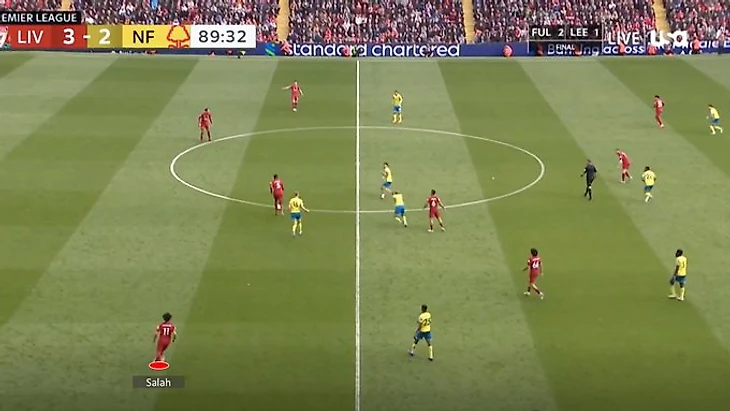 Мохамед снова часто оказывается непривычно глубоко и широко, некоторые примеры этого можно увидеть ниже. Логично считать, что команда, в составе которой есть атакующий игрок уровня Салаха, должна делать все, чтобы он максимально часто оказывался как можно ближе к чужим воротам.