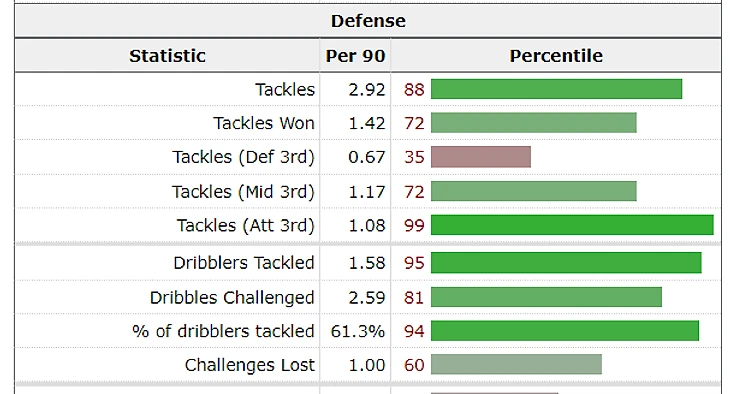 Против «Вест Хэма», например, у него 3/4 успешных отборов, 6/9 выигранных единоборств внизу и 50% успешных верховых дуэлей. Он также совершил 3 перехвата и 6 раз возвращал мяч при 92% точности пасов.