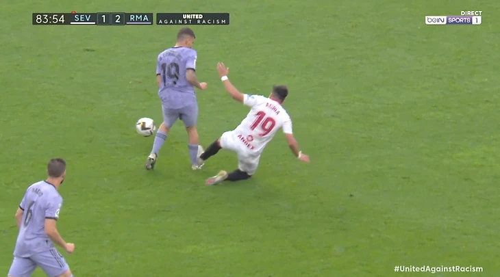 В концовке встречи Акунья получил красную карточку за фол на Себальосе.