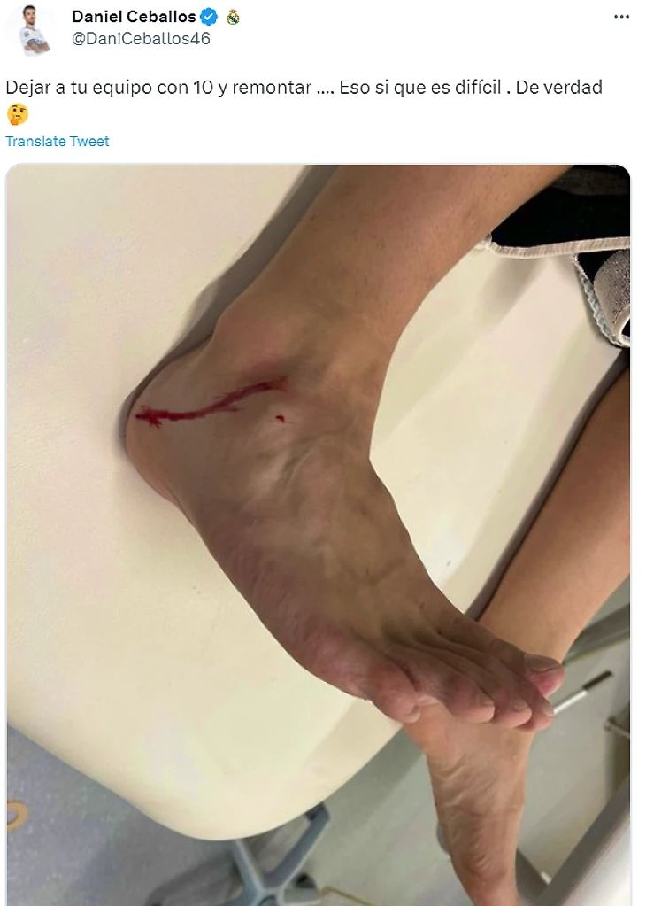 Себальос в ответ на пост Акуньи поделился с подписчиками фотографией своей ноги после столкновения с защитником «Севильи», написав: