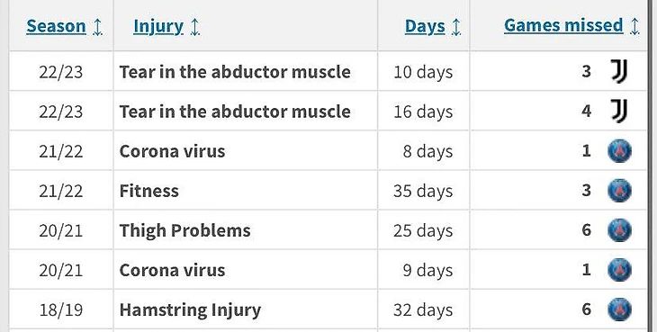 В середине второго тайма, когда Ювентус уже вел в счете 3:0, Ди Мария схватился за бедро и начал хромать. Футболисты Ювентуса принялись сигнализировать тренеру о необходимости замены. Как оказалось позже – Анхель повредил левую приводящую мышцу бедра и выбыл на 20 дней. Возвращение состоялось чуть раньше, но игрок не смог показать прежнего класса, выйдя на замену против Специи. Болельщики чуть воспряли духом, но ненадолго – в матче против Фиорентины спустя всего три дня Ди Мария вновь попросил замену, сославшись на боль в икрах. В итоге – две недели на реабилитацию и отсутствие в матче Лиги Чемпионов против ПСЖ.