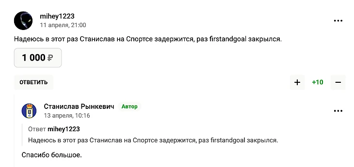 «Молодец, продолжай в том же духе!» Почему пользователи «Спортса» донатят любимым авторам?