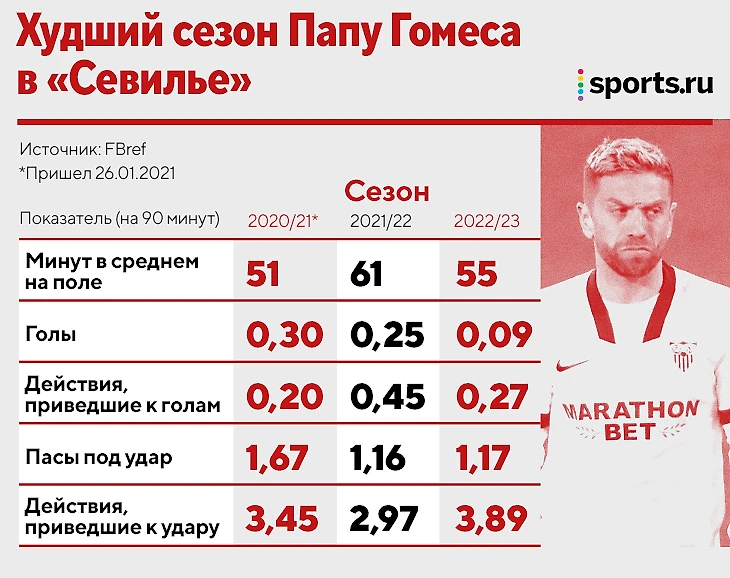 Гомес банально не нужен этой «Севилье», а потенциальных покупателей на 35-летнего игрока пока не видно. Это точно один из худших сезонов в карьере аргентинца.