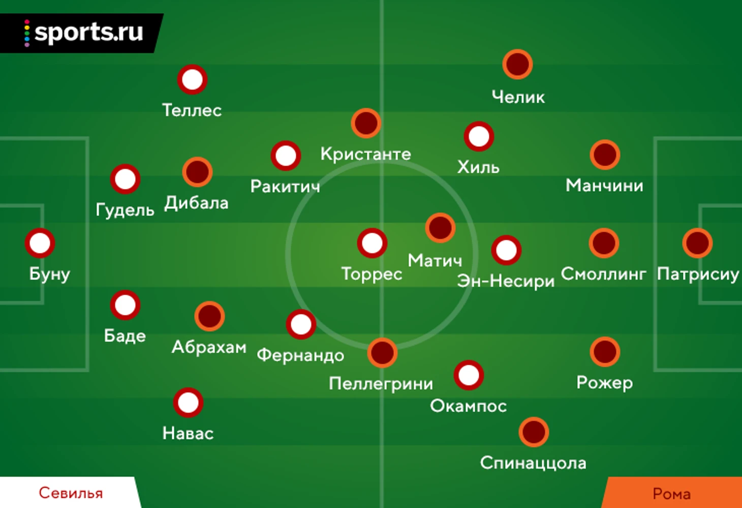 Состав и схема «Севильи» угадывались. Хосе Луис Мендилибар обошелся без сюрпризов. Единственным отклонением от нормы стал выход Алекса Теллеса слева в защите. Дело в дисквалификации Маркоса Акуньи. За последние 10 дней аргентинец умудрился получить две красные (с «Юве» и с «Реалом» в Ла Лиге). Всего за сезон у него четыре удаления. Он основной исполнитель слева, но в этом отношении крайне ненадежный.