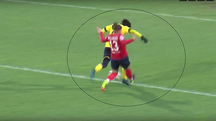 На 53-й минуте Вахрушева удаляет с поля игрока «Енисея» Янушкявичус. На рассмотрении ЭСК станет понятно, что футболистка сыграла чисто и без нарушений правил игры. Однако во время матча судейская бригада посчитала иначе.